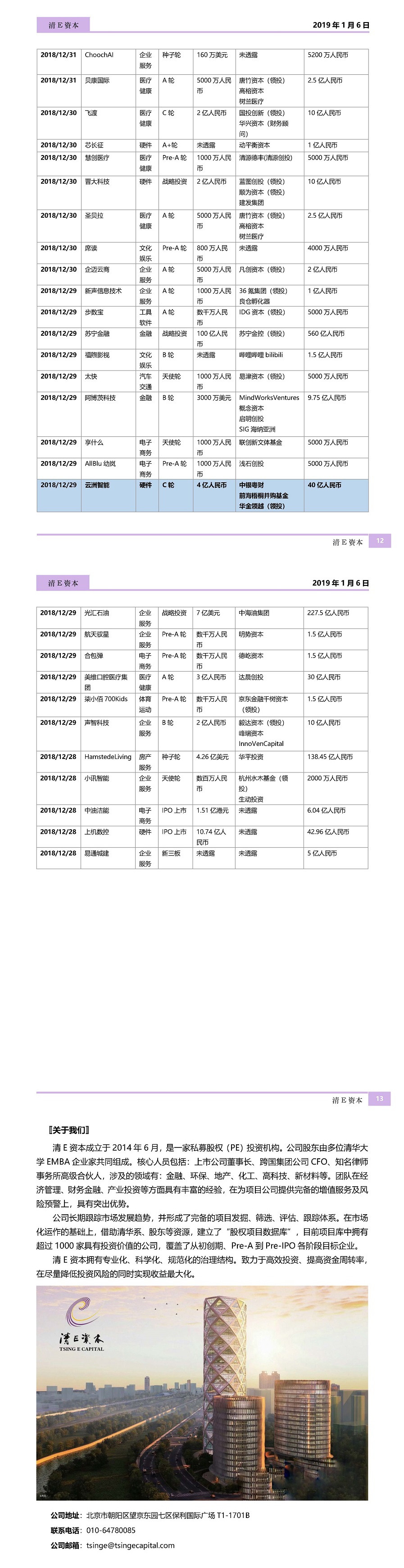 一周资本市场行业及投资报告【清E资本】(1月6日)