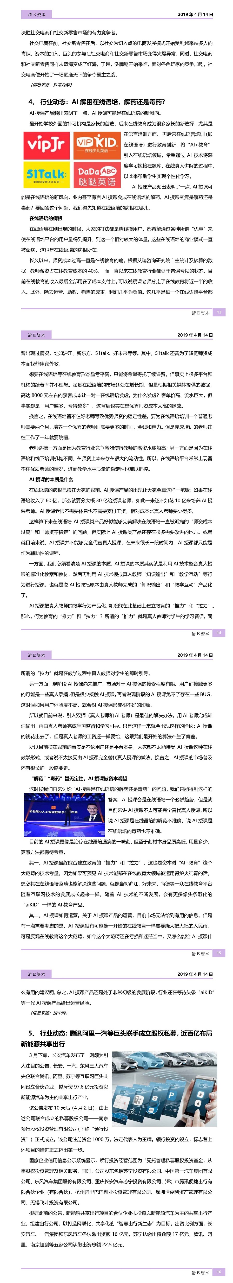 一周资本市场行业及投资报告【清E资本】(4月14日)
