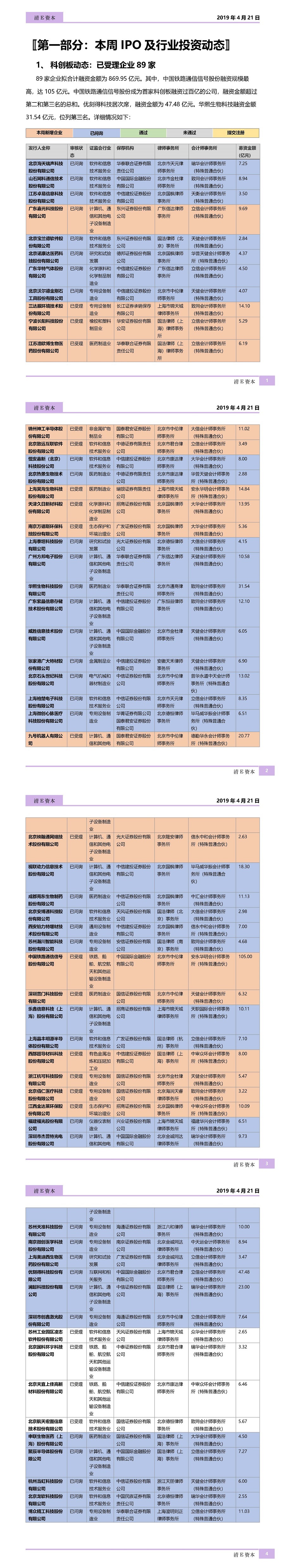 一周资本市场行业及投资报告【清E资本】(4月21日)